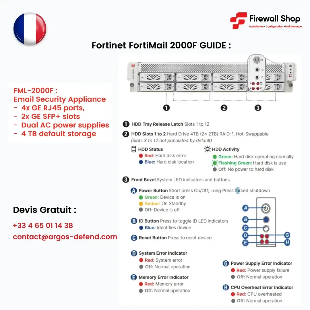 Chez Firewall Experts France, bénéficiez du Fortinet FortiMail 2000F au meilleur prix, avec un service complet et personnalisé :
